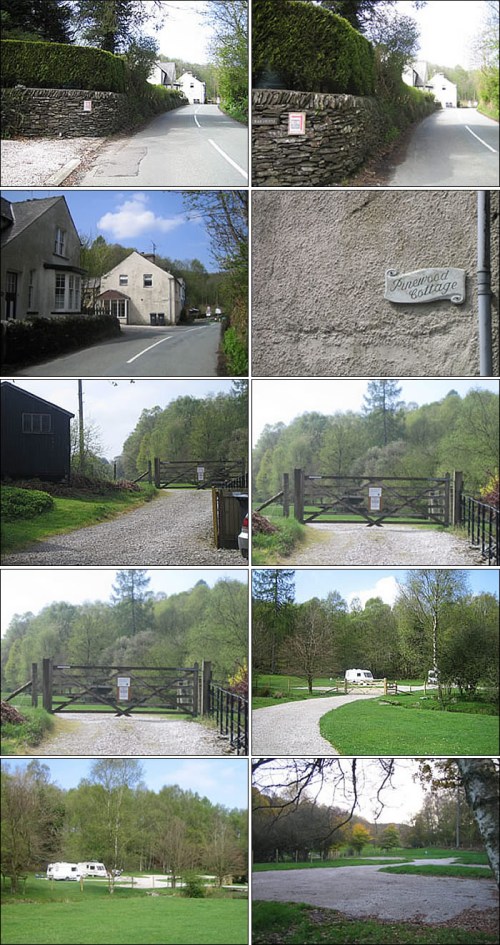 Turn off the A590 at Newby Bridge on to the road signposted Lakeside, YMCA and Hawkshead. Proceed over the bridge and past the Swan Hotel. Half a mile past Lakeside Hotel, after a bad bend turn sharp left between two cottages (Pinewood Cottage/The Old Post House) (sign 50 yards before turning). If you have a long caravan you may need to pull over to the right hand side of the road in-order to achieve the sharp turn in one manoeuvre. However you should watch the rear of your caravan does not catch the wall opposite as you turn in. Also be prepared for the passenger to get out as the gate into the site access may be closed (unusual). If you get to the Bobbin Mill you have gone too far! Proceed down the road to the YMCA and turn in the South Camp car park to return.